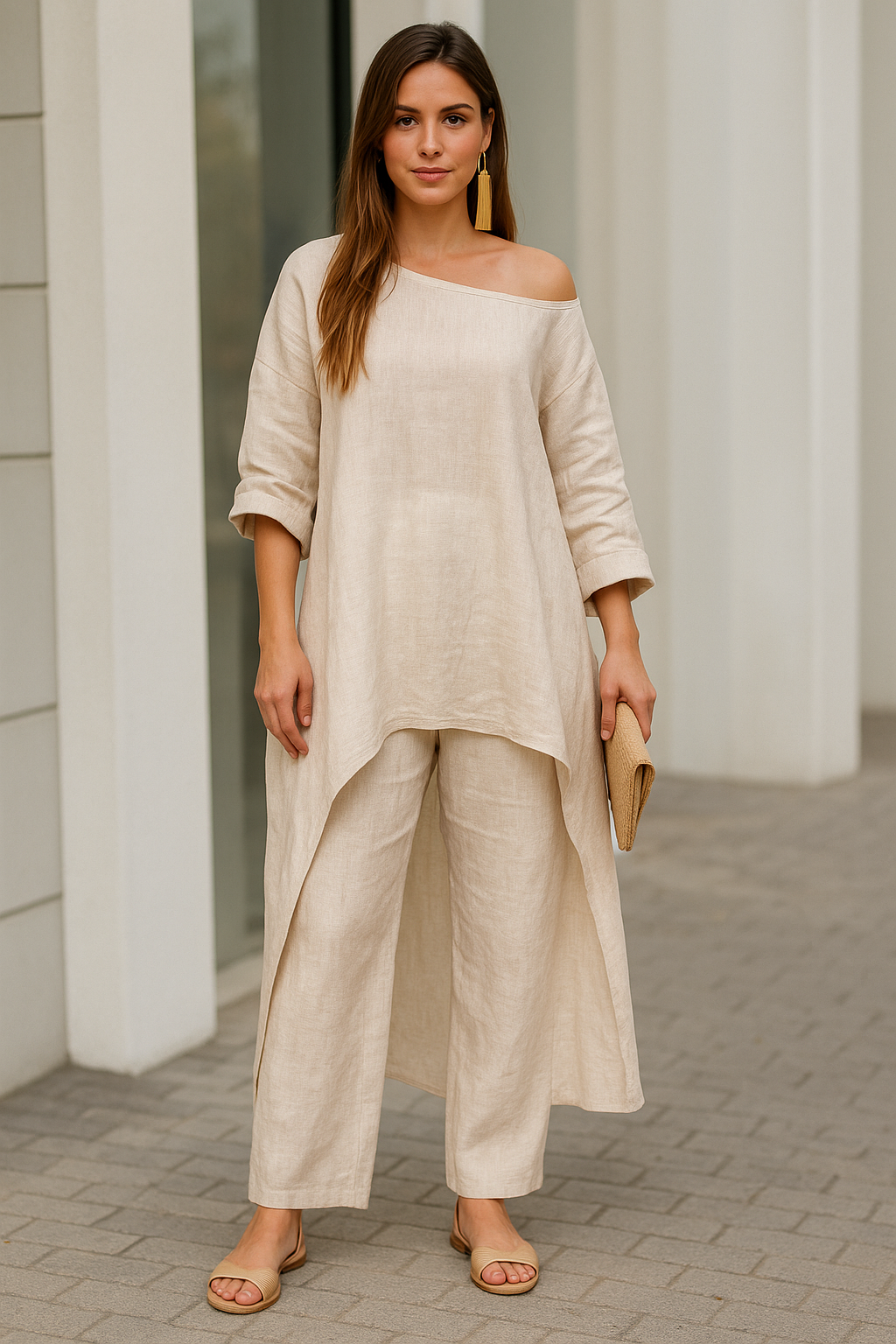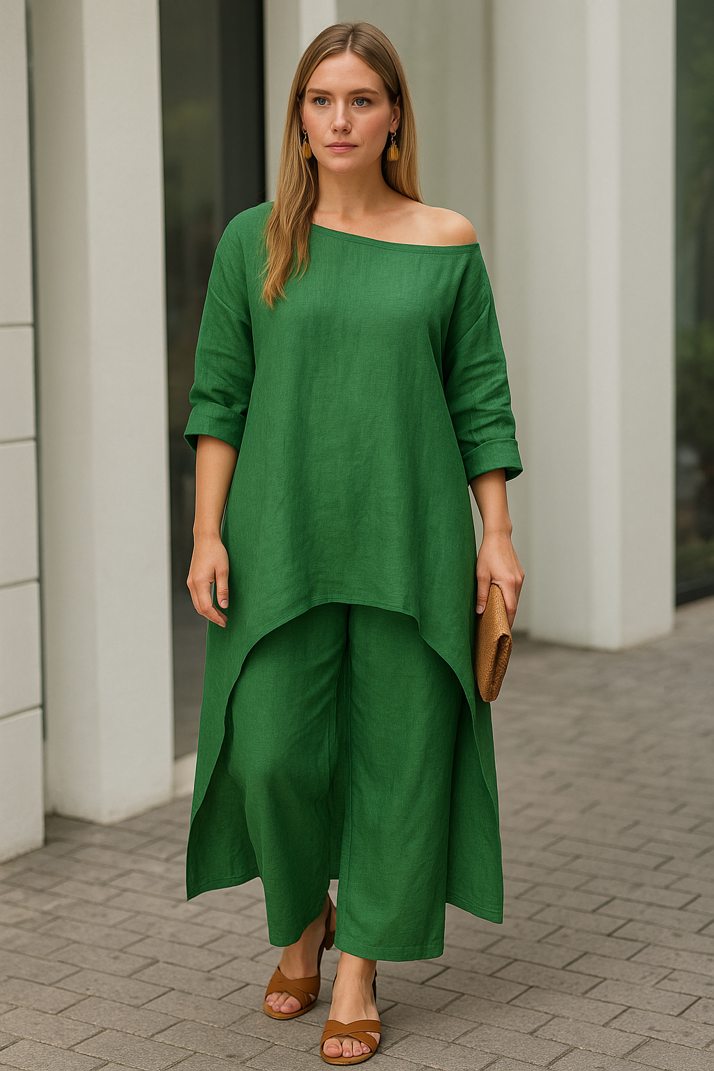 This set brings together a chic design with the comfort of cotton and linen. It’s perfect for those who want to look stylish without sacrificing comfort. Enjoy a wardrobe staple that's both versatile and flattering, no matter your body type.